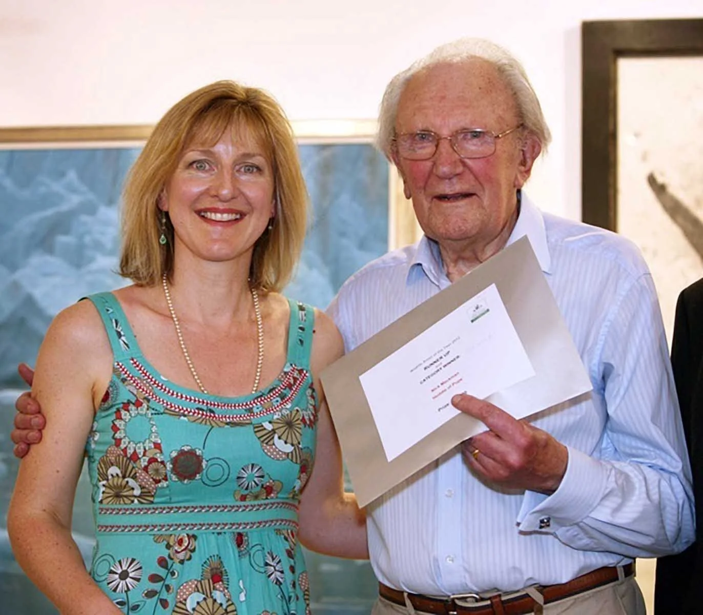 Nick with artist David Shepherd at the Wildlife Artist of the Year competition, which she won in 2015.