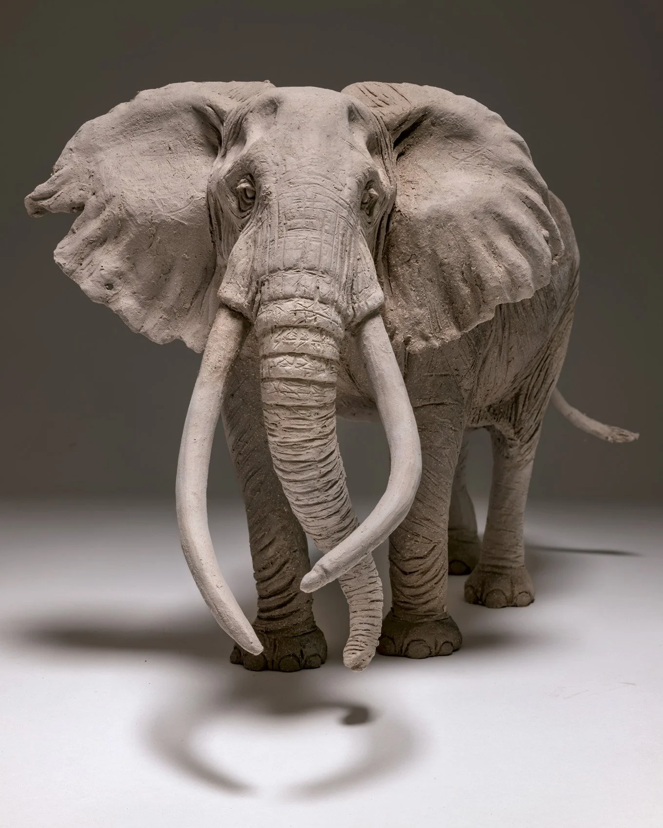 Available to order now on pre-release including a special £250 discount on the full release price. Limited edition bronze sculpture. Photos show the ceramic sculpture before casting. The finish will be a realistic elephant grey patina.