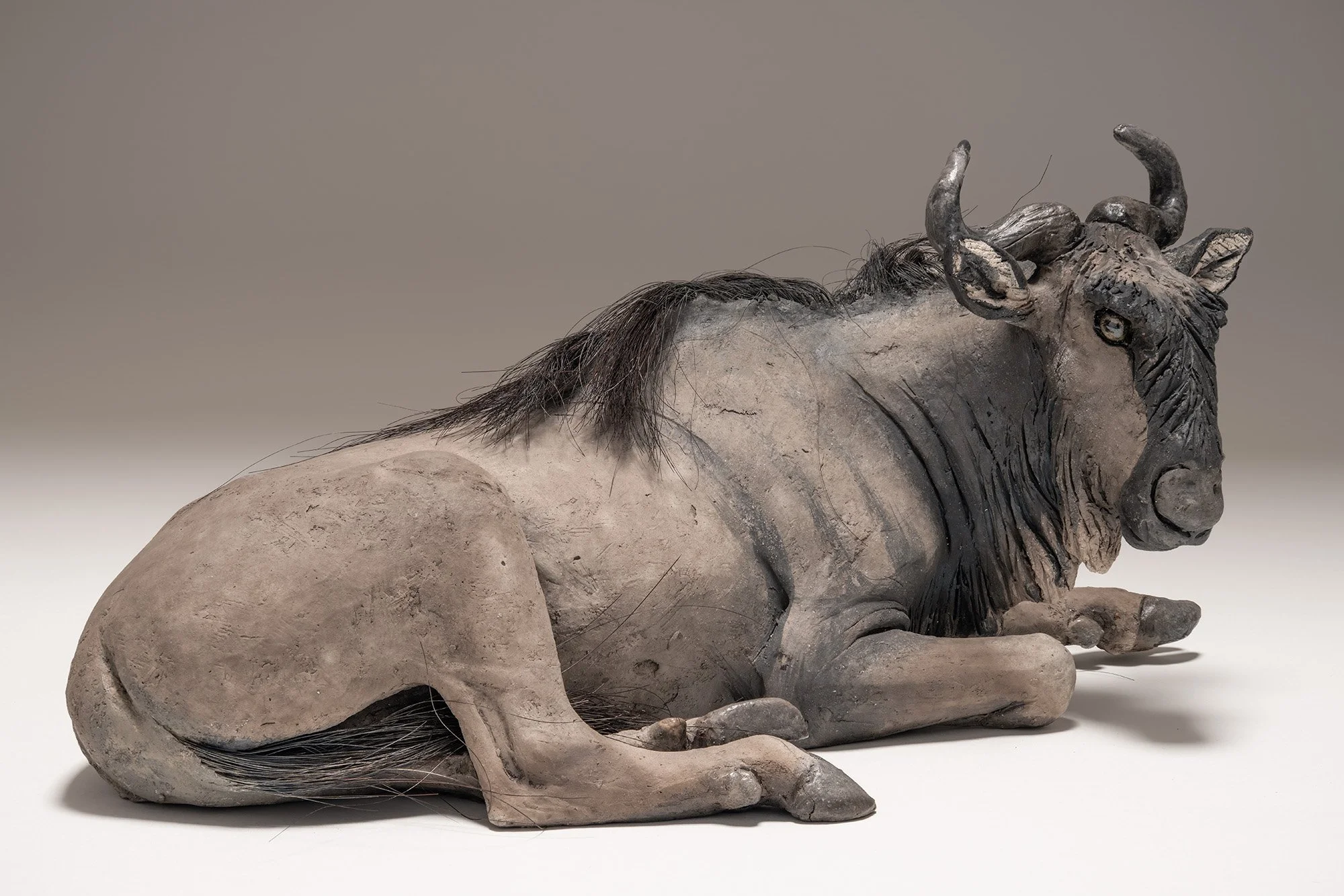 Wildebeest sculpture in Raku-fired ceramic